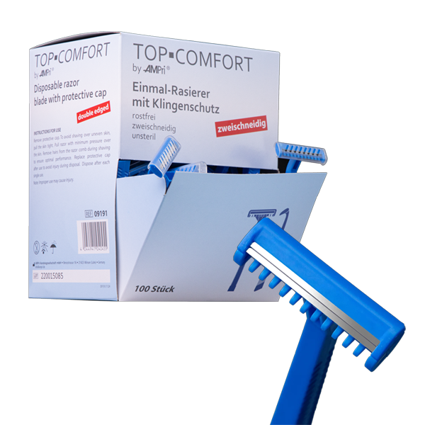 Lâminas descartáveis com dupla lâmina com capa protectora de plastico, evitando cortes acidentais e danos na lâmina.