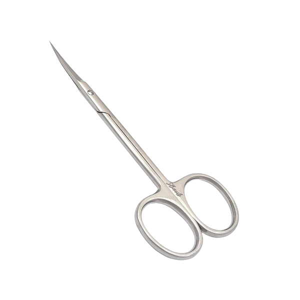 Tesoura de aço inoxidável para cortar o excesso de cutícula durante o processo de manicure. Graças à ponta afiada, permite cortes sem danificar a pele. Eles devem ser esterilizados após cada uso.