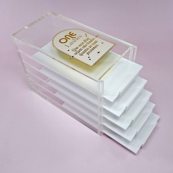 Caixa Organizadora de Pestanas: coloque as cartelas com pêlos das pestanas arrumadas em gavetas com a caixa acrílica transparente organizadora de pestanas.