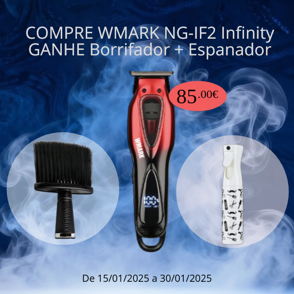 Na compra de uma Máquina Wmark NG-IF2 Infinity, receba grátis um espanador e um borrifador de barbeiro.