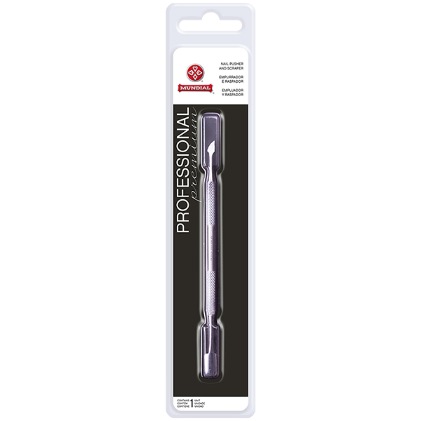 A Espátula de Manicure da Mundial, para uso profissional, é feita em aço inoxidável, podendo ser esterilizada em estufas ou autoclaves e é feita de um material durável e resistente com o uso contínuo. O cabo texturizado guarante o maior conforto e segurança no manuseio. Possui duas pontas, uma para remover as cúticulas e outra para empurrar as cutículas.