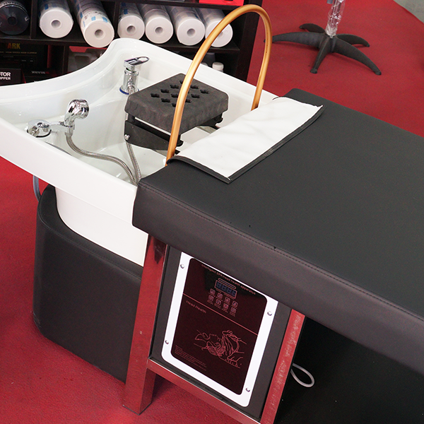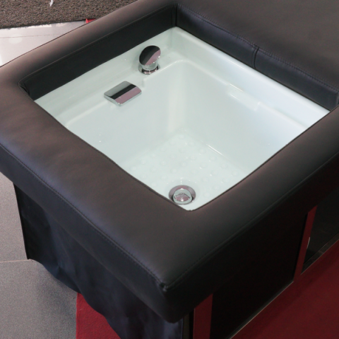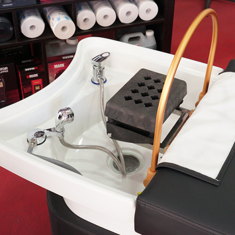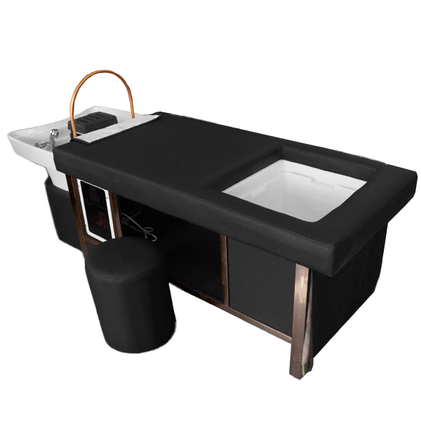 Estação completa de lavagem de cabeça, estilo Head Spa Japonesa, com uma bacia de cerâmica que já inclui a torneira de Head Spa, apoio de cabeça ajustável e chuveiro de lavagem (para utilizar o chuveiro tem que ligar a estação à canalização de água). Ainda inclui uma bacia na zona dos pés para pedicure ou spa dos pés. Estrutura em aço inoxidável, materiais em napa resistentes e fáceis de limpar, almofadas que podem ser retiradas ou colocadas para transformar numa marquesa/estação de lavagem.