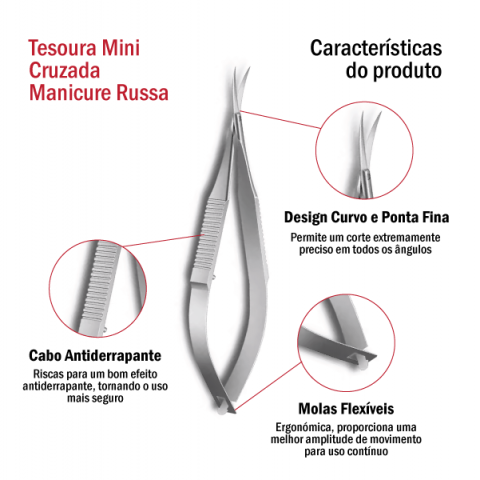 Design curvo e ponta fina, permite um corte extremamente preciso em todos os ângulos