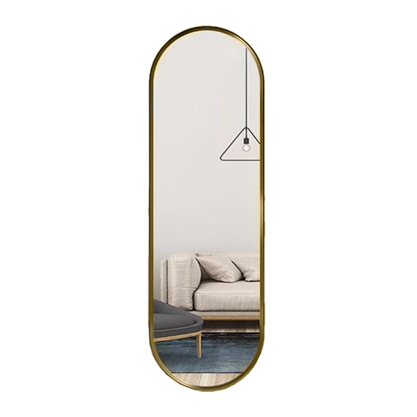 Espelho oval minimalista, com borda dourada, para salões, cabeleireiros, barbeiros. Proporciona ao seu salão um toque de elegância discreto e sofisticado, combinando com todo o espaço de forma harmoniosa.