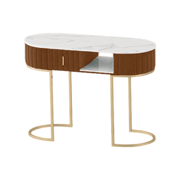 Mesa Concept Lovely em Veludo Castanho, com acabamentos dourados e estofos aveludados, cor castanha, é a mesa ou secretária perfeita para decorar o seu espaço com a maior elegância e sofisticação. Eleve o seu espaço com a melhor decoração de interiores e consiga um look luxuoso e moderno, sem dispensar o conforto.