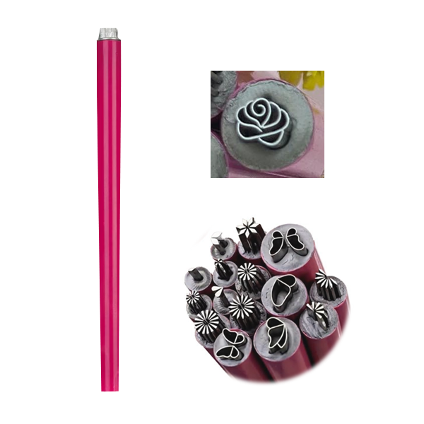 Carimbo em caneta para efeitos de unhas. Material superior em metal e cabo em plástico resistente rosa. Caneta com figura de rosa, consegue produzir vários efeitos de nail art de forma rápida e fácil. Decore as unhas dos seus clientes da forma mais prática e poupe tempo em mesa.