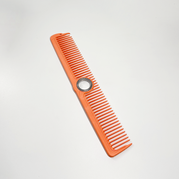 O pente ajuda a elevar e guiar o cabelo, permitindo criar degradês, transições suaves e linhas limpas.