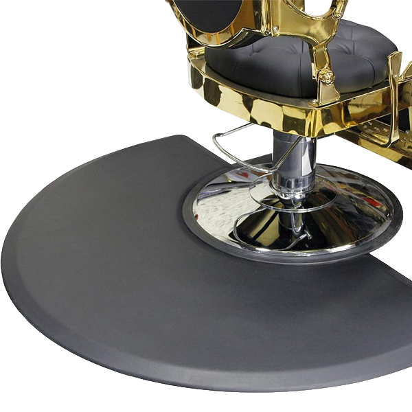 Tapete anti-fadiga para reduzir o cansaço de estar em pé do profissional, feito de silicone suave e base anti-derrapante, serve para colocar ao redor da base das cadeiras de barbeiro ou cabeleireiro. Ajuda a aliviar a pressão nas articulações dos joelhos e pés, durante as longas horas de trabalho em pé. Superfície à prova de água, fácil de limpar e higienizar.