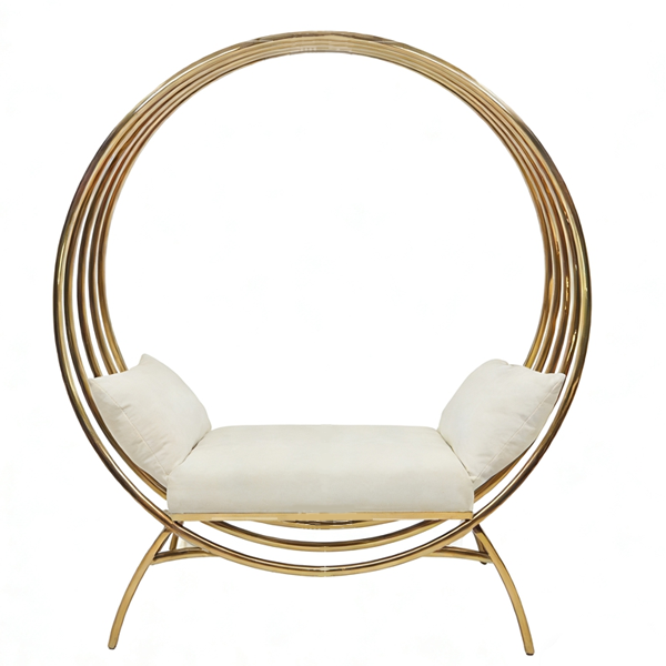Cadeira Inspiration Branca com acabamentos dourados e estofos aveludados. Possui duas almofadas laterais removíveis. Estrutura estável, robusta e confortável.
