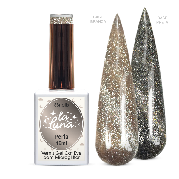 A sua cobertura é com efeito cat eye, possui microglitters que conseguem ser manipulados com um iman.