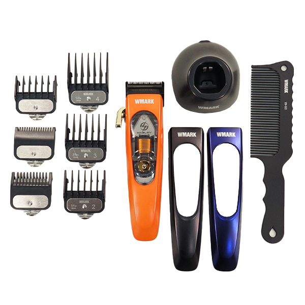 - Inclui 6 pentes (1,5/3/4,5/6/10/13mm), escova de limpeza, óleo lubrificante, porta-lâminas, pente de cabelo, base de carregamento, adesivos de cabelo, mola, alavanca cónica, 2 capas, 1 conjunto de lâmina extra, cabo carregamento USB Tipo-C e adaptador