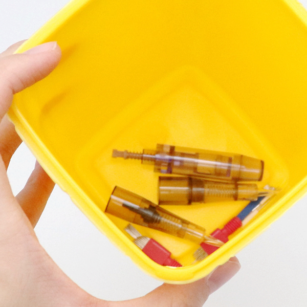 Coloque as suas agulhas ou navalhas descartáveis, de microblading, micropigmentação, barbearia, e outros objetos perfurantes ou cortantes num contentor próprio feito de polipropileno copolímero, à prova de vazamento. Mantenha objetos de risco de infeção no contenter para eliminar contaminações e criar um ambiente seguro.