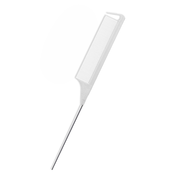 Pente de quimica com cabo de metal para auxiliar na separação das mechas de cabelos de forma precisa durante a colorimetria ou penteados. Cabo de metal de aço inoxidável e dente diagonal superior para criar a repartição do cabelo e agarrar secções de cabelo mais facilmente.