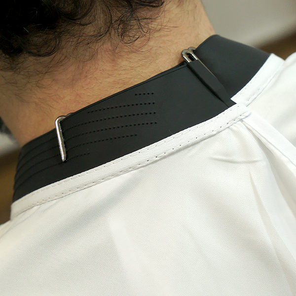 A Capa SB Barber é uma capa para corte de cabelo que oferece resistência à água e salpicos, proteção contra resíduos, tintas e cabelos, durante os procedimentos de barbearia ou cabeleireiro. Possui materiais leves e resistentes e o seu design minimalista branco transmite um cuidado preocupado com higiene e segurança, profissionalismo e dedicação. A sua gola de silicone permite selar com mais eficácia contra líquidos ou fios de cabelo durante o corto, sendo mais prático e cómodo para todos. Tamanho único grande que cobre a maioria do corpo.