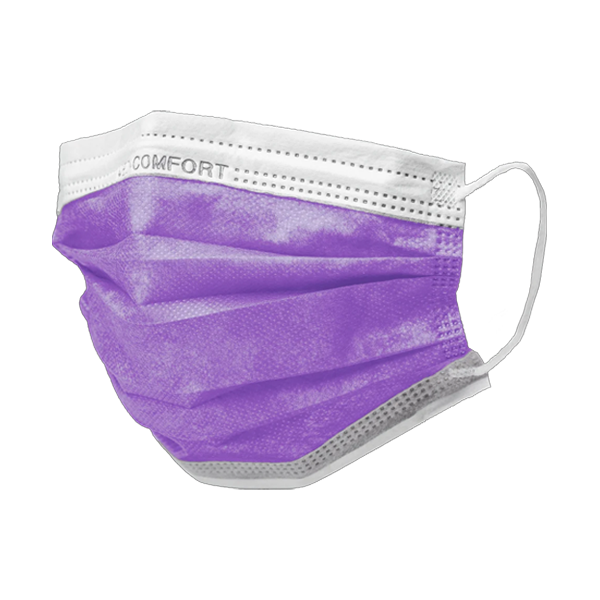 Máscaras Descartáveis Lilás, para gabinetes de estética, salões de beleza e manicure/pedicure.