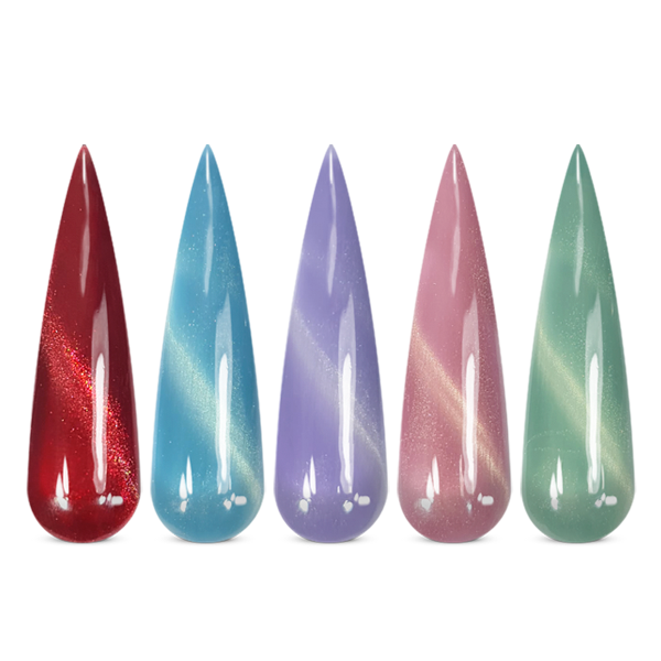 A sua cobertura é com efeito cat eye, possui microglitters que conseguem ser manipulados com um iman.