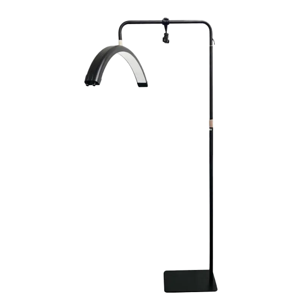 Lâmpada Led em arco, com suporte para o telemóvel, intensidade de luz ajustável de 0 a 100% e temperatura de 3000 a 6000 K. Ideal para extensão de pestanas, design de sobrancelha e henna, pois a luz focada elimina as sombras e proporciona uma luz homogénea.