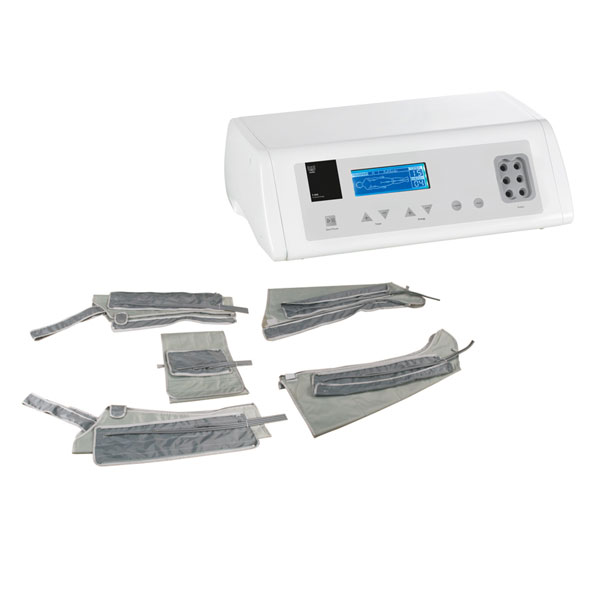 Equipamento de Pressoterapia, equipado com fato que inclui, botas, braços, cinto abdominal.
